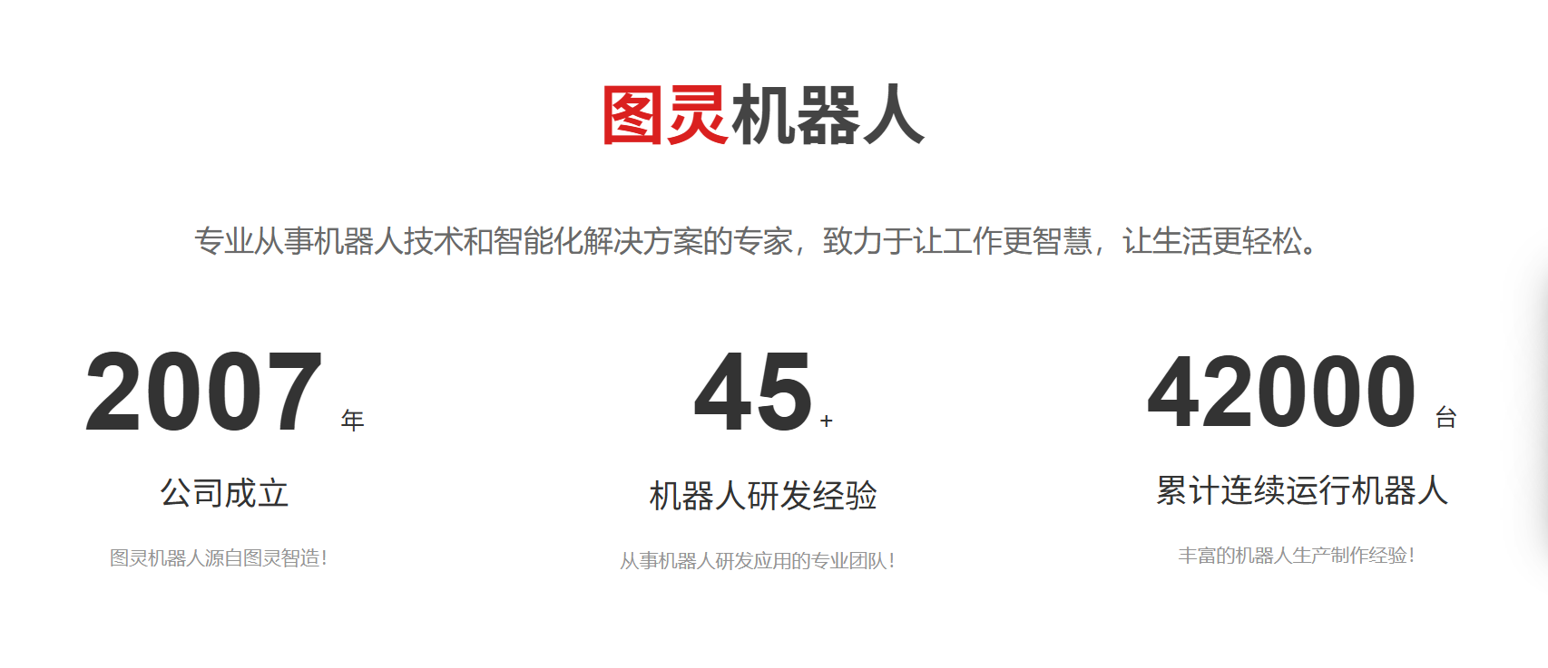 上海图灵智造机器人股份有限公司成立于 2007 年 9 月,是由中国宝武宝信软件直接持股 42% 并通过一致行动协议实现实际控制的国资背景企业,定位为专业工业机器人解决方案专家,专注智能机器人研发与产业化,是中国宝武布局工业智能化的核心载体。品牌以让工作更智慧,让生活更轻松为使命,以成为机器人行业领先者、员工与企业共同发展的示范者为愿景,战略锚定一流机器人科技公司,依托国资资源整合优势与工业场景深度理解能力,走出一条 “自主研发、规模落地、行业深耕” 的国产机器人发展路径。